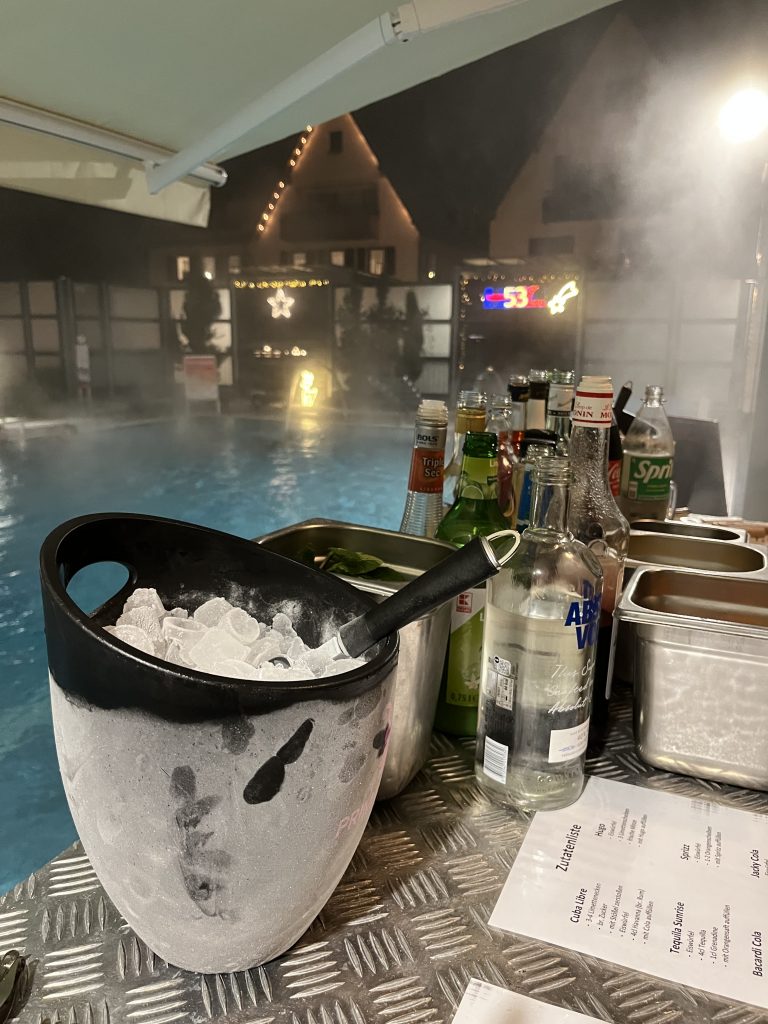 Trotz milder Temperaturen waren unser fruchtiges „Thermalwasser“, das „Thermalwasser mit Aufguss“ und der  Hot Aperol rege nachgefragt. Der kühle Pro ThermalBad Secco mit Ente und Rabatt auf einen Thermalbadeintritt wurde überwiegend als Mitbringsel gekauft.