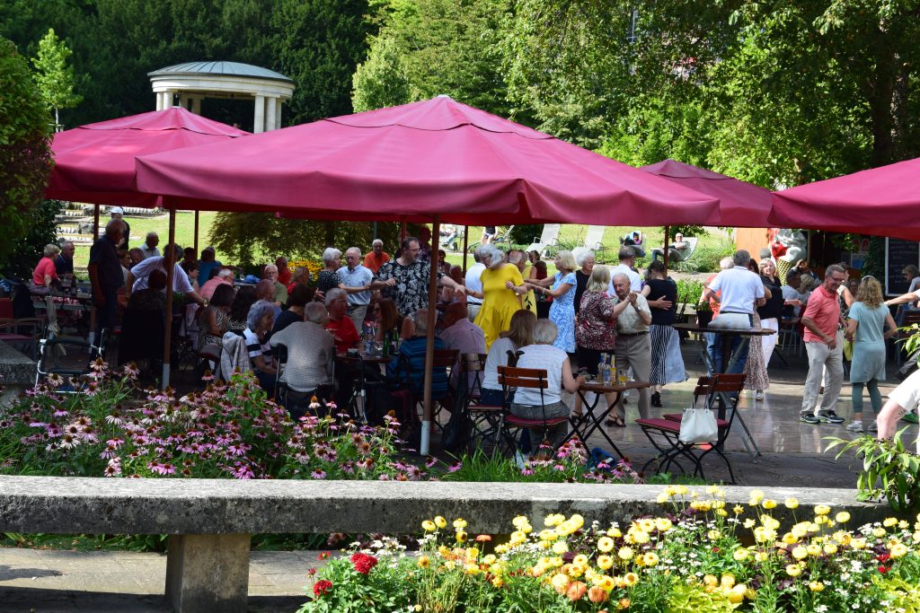 Beim Tanz im Kurpark mit Alleinunterhalter Martin Russ wurde das Team vom Bistro im Park durch zwei Fördervereinsmitglieder unterstützt. Die Anfrage kam zu Beginn der letzten Woche und wir finden es toll, dass sich zwei Helferinnen aus unserem Gastroteam bereiterklärt haben. Bei sommerlichen Temperaturen kamen an diesem Nachmittag rund 100 Besucher und dank der Unterstützung konnten die Wartezeiten moderat gehalten werden. Dafür gab es reichlich Lob und Anerkennung. Danke an Sigrid und Monika!