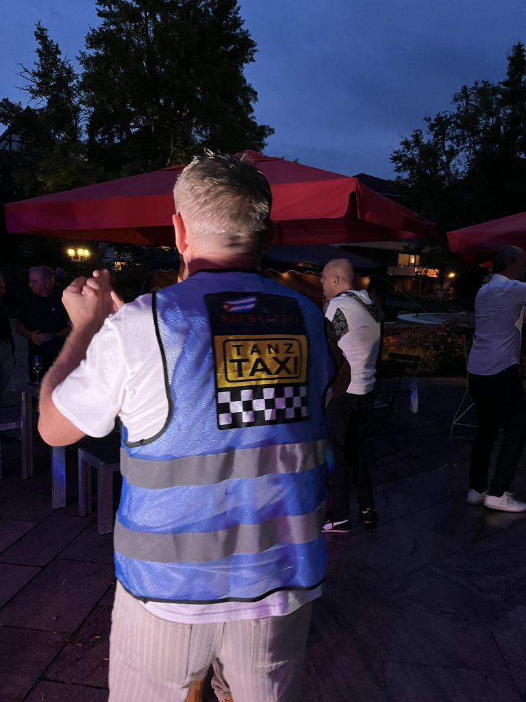 Nachdem es den Tag über immer wieder teils kräftig geregnet hatte, war es pünktlich zum Beginn trocken, mäßig warm und nach und nach kamen zuerst noch zögerlich die Besucher. Zum ersten Workshop des Abends war die Tanzfläche jedoch schon gut gefüllt, denn es blieb kaum ein Gast auf seinem Platz sitzen. Unter Anleitung von Leo wurde in rund 45 Minuten neben dem Grundschritt vorwärts, seitwärts, das Aufdrehen und eine Rechtsdrehung geübt. Die zusätzlichen Informationen zu Körperhaltung und Fußarbeit brachten den ein oder anderen schon fast eine seine Grenzen. Gut, dass beim zweiten Workshop die selben Elemente nochmals gezeigt und geübt wurden. Zum Klang der karibischen Rhythmen mischten sich eingefleischte Salsa-Tänzer auf der Tanzfläche zwischen die Anfänger. Das Tanz-Taxi bekam kaum eine Verschnaufpause.