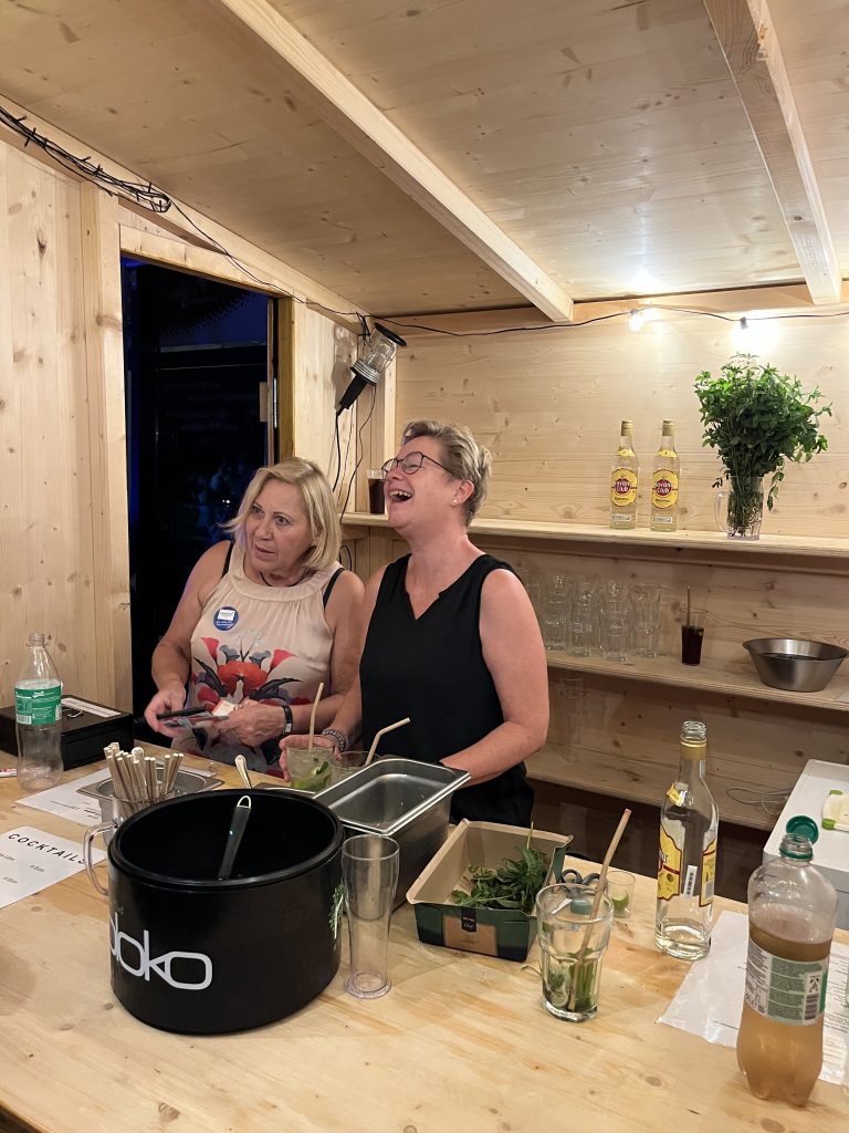 Hunger und Durst konnten beim Team vom Bisto im Park gestillt werden. Dort gab es unter anderem leckere Donuts. Spontan wurden Hugo und Aperol am Beckenrand ausgeschenkt, ein bissl wie Sternebaden, nur ohne Sternenhimmel.